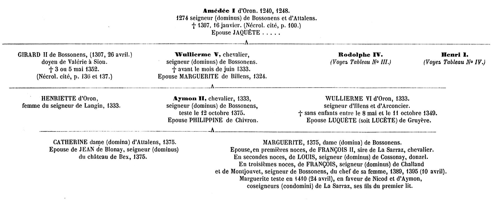Tableau I. Seigneurs d'Oron-le-Châtel et d'Oron-la-Ville