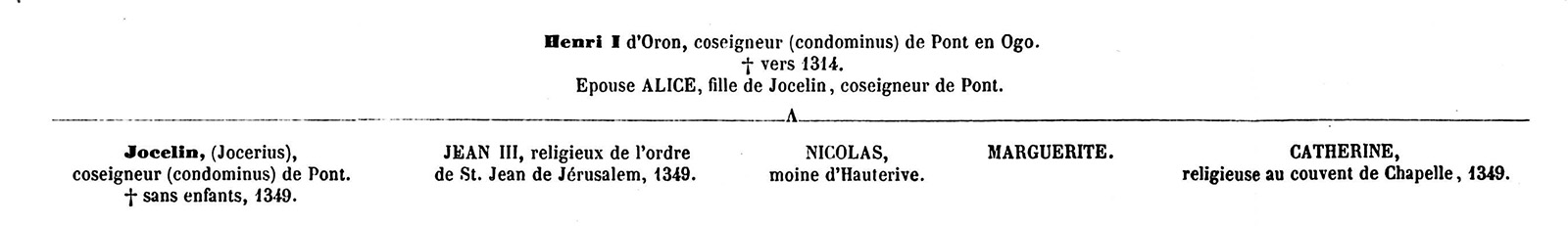 ÉBAUCHE D’UNE TABLE GÉNÉALOGIQUE DE LA MAISON DES SIRES D’ORON