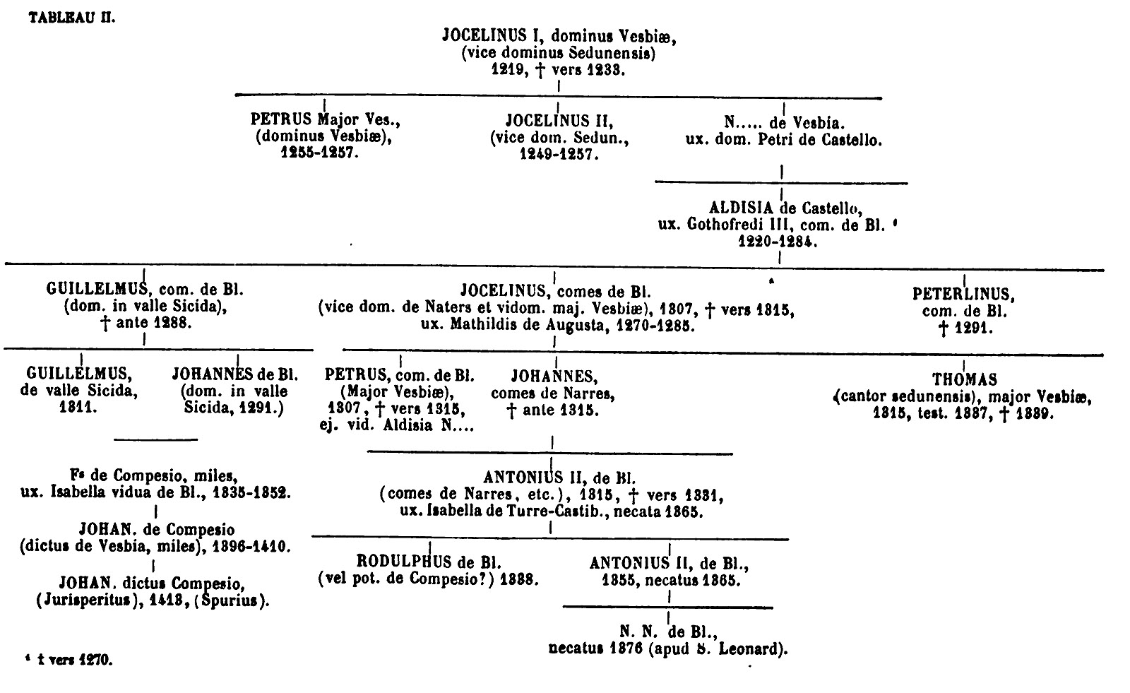 La juridiction des vidomnes de Naters embrassait la portion du dixain actuel de Brigue qui est située sur la rive droite du Rhône; de cette manière, lorsque le comte Jocelin fut en possession de l’héritage de la comtesse Aldise sa mère, il se trouva l’un des plus riches seigneurs du Haut-Valais. Les actes contemporains le qualifient tantôt de « comte, » tantôt de « major ou seigneur de Viége; » ce dernier titre continua à être porté par ses descendants, soit dans les chartes, soit dans les traditions du pays 1 .