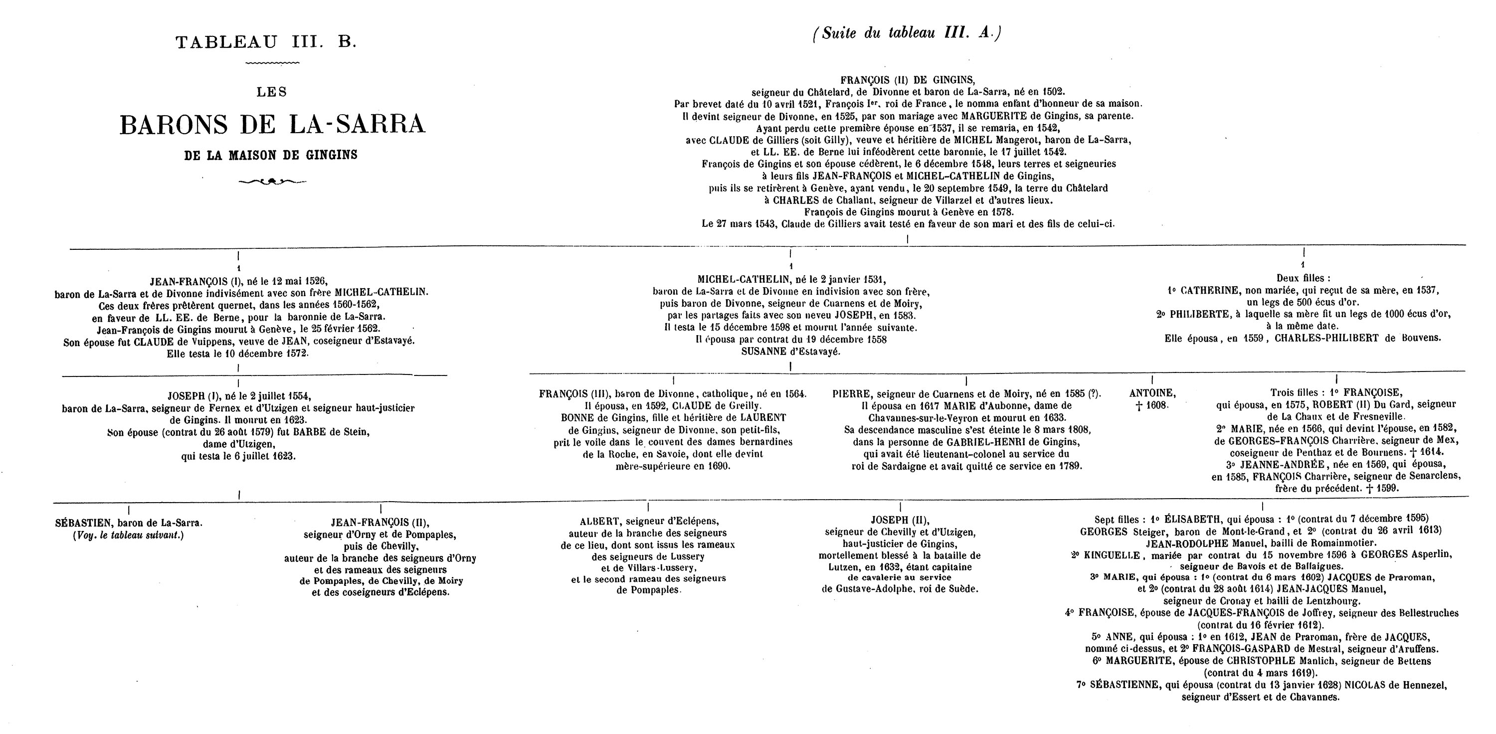III B. Les Barons de La-Sarra de la maison de Gingins.