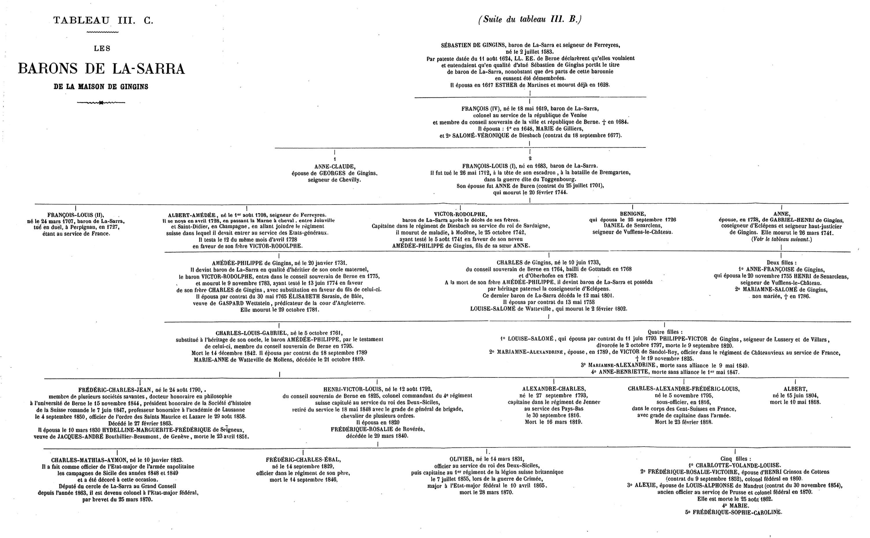 III C. Les Barons de La-Sarra de la maison de Gingins. (suite).
